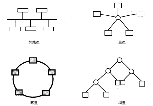 总线结构是比较普遍采用的一种方式,它将所有的入网计算机均接入到一条通信线上,为防止信号反射,一般在总线两端连有终结器匹配线路阻抗。