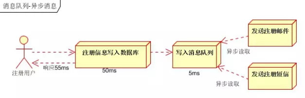 场景1:用户注册后,需要发送注册邮件和注册短信。