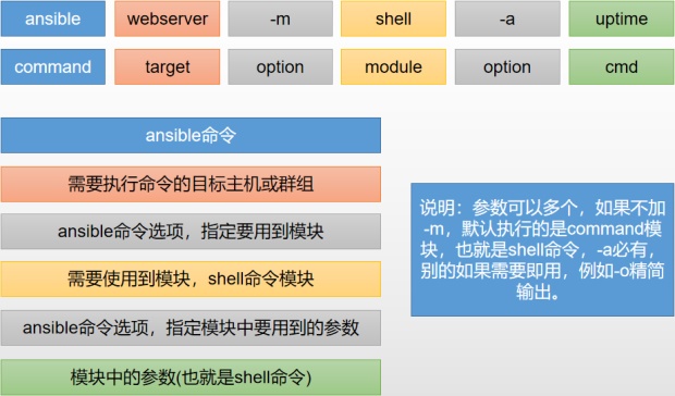中是指需要快速执行,并且不需要保存的命令。说白了就是执行简单的命令——一条命令。对于复杂的命令则为playbook