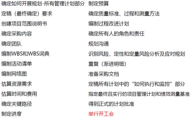 需求管理计划 风险管理计划 相关方参与计划 范围基准 | 质量管理计划 |