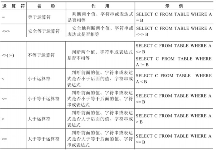 比较运算符用来对表达式左边的操作数和右边的操作数进行比较,比较的结果为真则返回1,比较的结果为假则返回0,其他情况则返回NULL