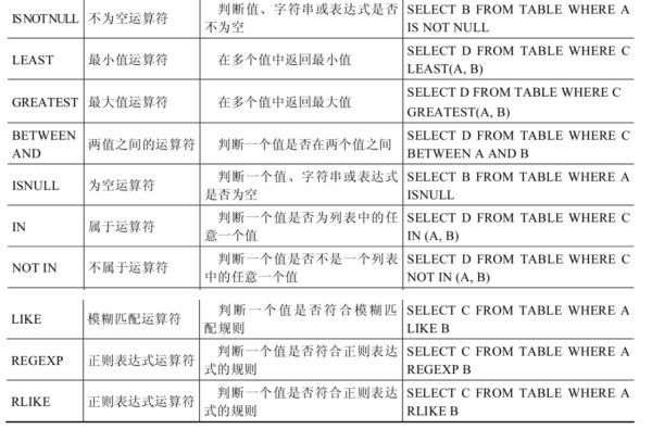 IN运算符用于判断给定的值是否是IN列表中的一个值,如果是则返回1,否则返回0。如果给定的值为NULL,或者IN列表中存在NULL,则结果为NULL