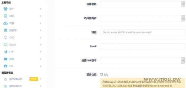 CyberPanel面板添加网站与其他服务器面板一样,肯定是可以创建网站的。还有一个特点在于PHP版本可以选择PHP5.3-PHP7.2,在安装面板的时候已经都给我们安装完毕所有的PHP版本。而且可以自动创建Let's Encrypt证书。