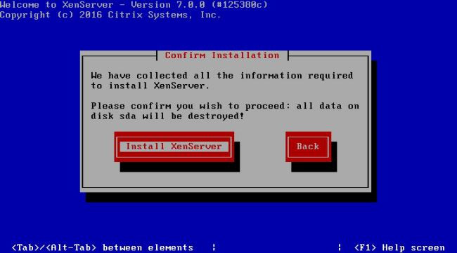21、全部设置完成,开始安装,点击Install XenServer——回车