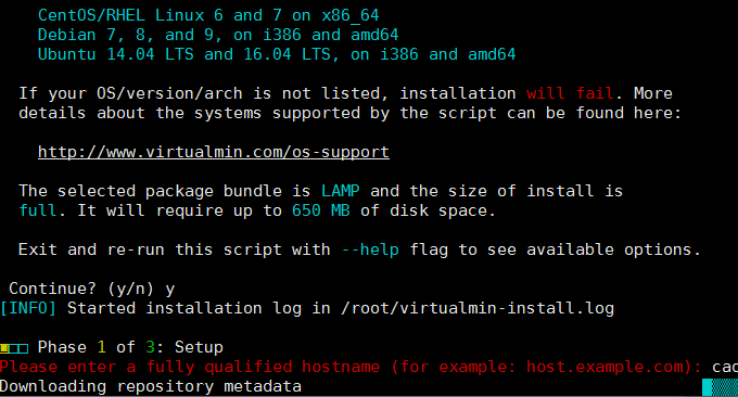 安装第一步会让你设置Virtualmin/Webmin的域名。