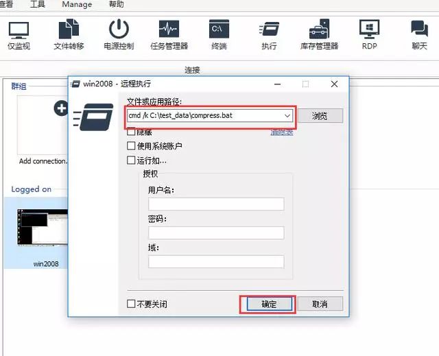 1.在远程端编写一个用于压缩文件的bat脚本(compress.bat):