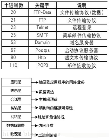 (1)应用层:TELNET、FTP、TFTP、SMTP、SNMP、HTTP、BOOTP、DHCP、DNS(注:DNS使用的传输协议既可为TCP又可为UDP)